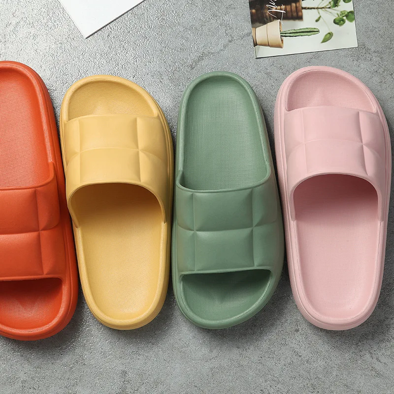 Сандалии в клетку для мужчин и женщин, мягкая нескользящая обувь для купания, на толстой подошве, для дома, летняя Всесезонная обувь для пар