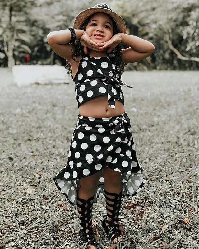 От 1 до 6 лет одежда для малышей Модная одежда для девочек Комплекты одежды нерегулярные в горошек и юбка на подтяжках + Топ, комплект из 2 предметов