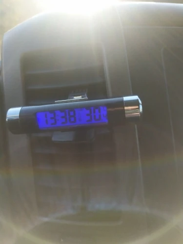 Характеристики: термометр для часов транспортного средства. Часы, функция отображения температуры, задний светильник: если задний светильник имеет кнопку, он будет светильник около 5 секунд после нажатия, оснащен зажимом, который может зажимать выход кондиционера/солнцезащитный козырек для легкой установки.