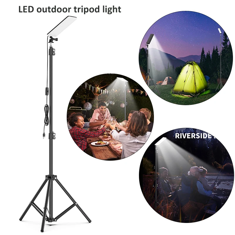 Портативный светильник для кемпинга, яркий светодиодный светильник с регулируемым разъемом USB и перезаряжаемым штативом, рабочий светильник для отдыха на открытом воздухе, кемпинга, пикника