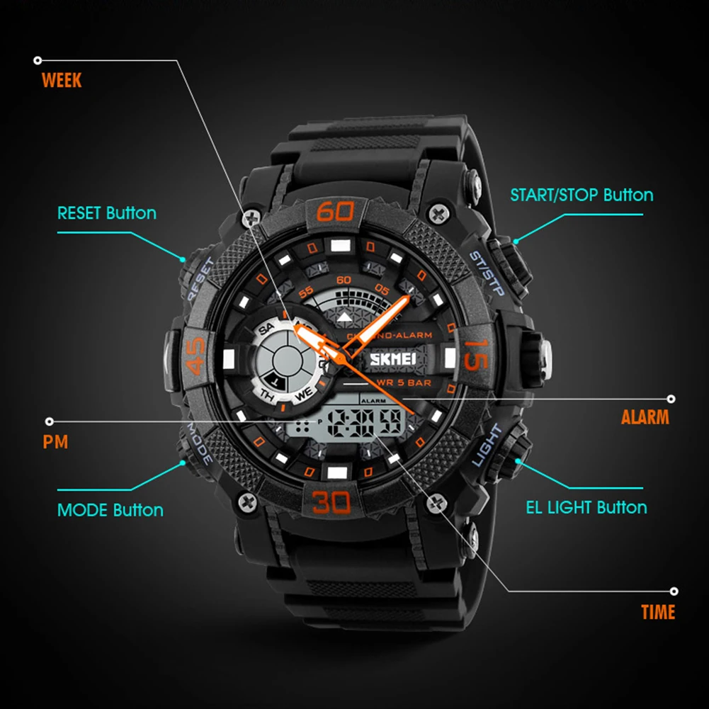 Часы наручные SKMEI мужские электронные кварцевые, модные уличные спортивные цифровые водонепроницаемые до 50 м, 1228