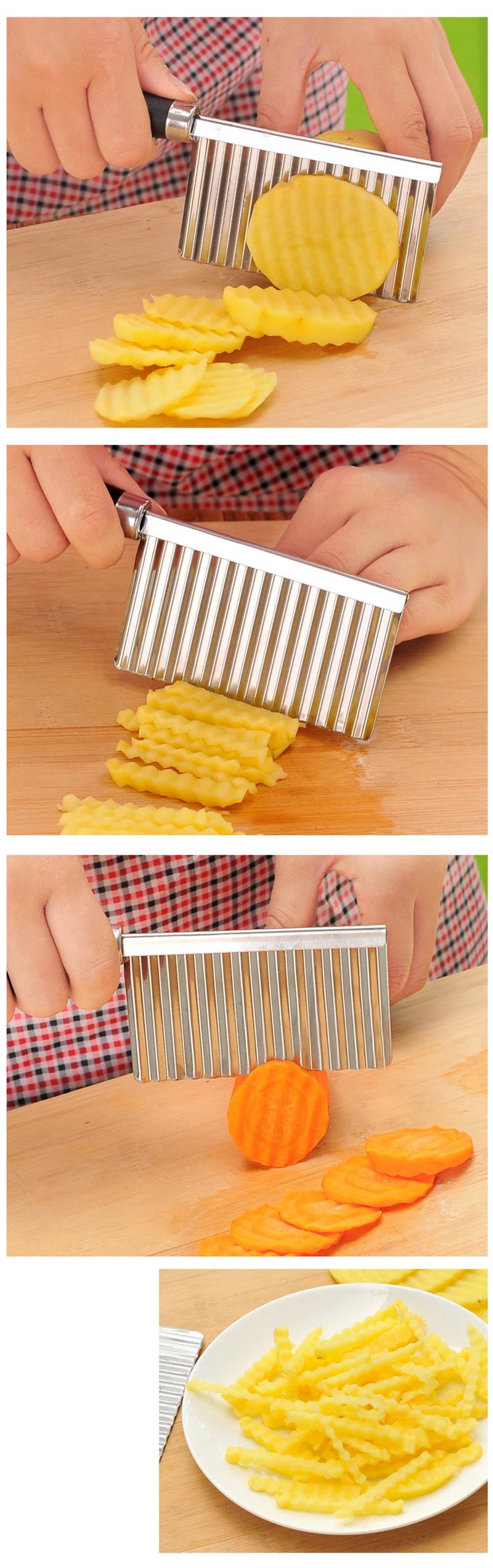 Кухонный нож из нержавеющей стали для волнистой нарезки картофеля, для резки овощей, фруктов, французского, нарезка для картофеля фри, для резки огурцов, моркови, волн, нож, инструменты