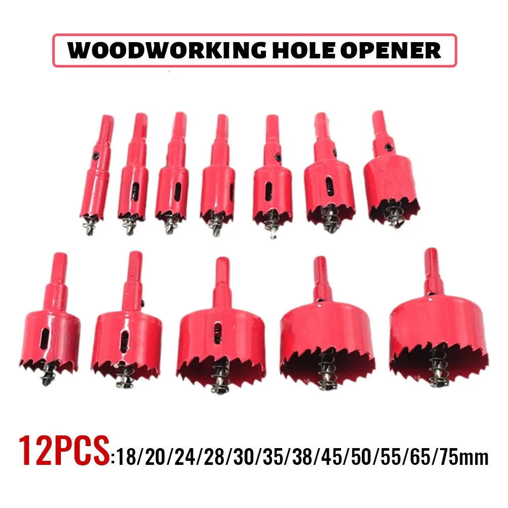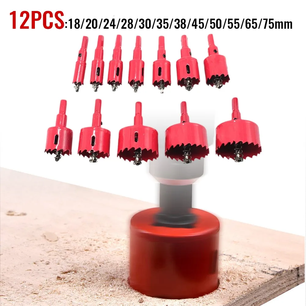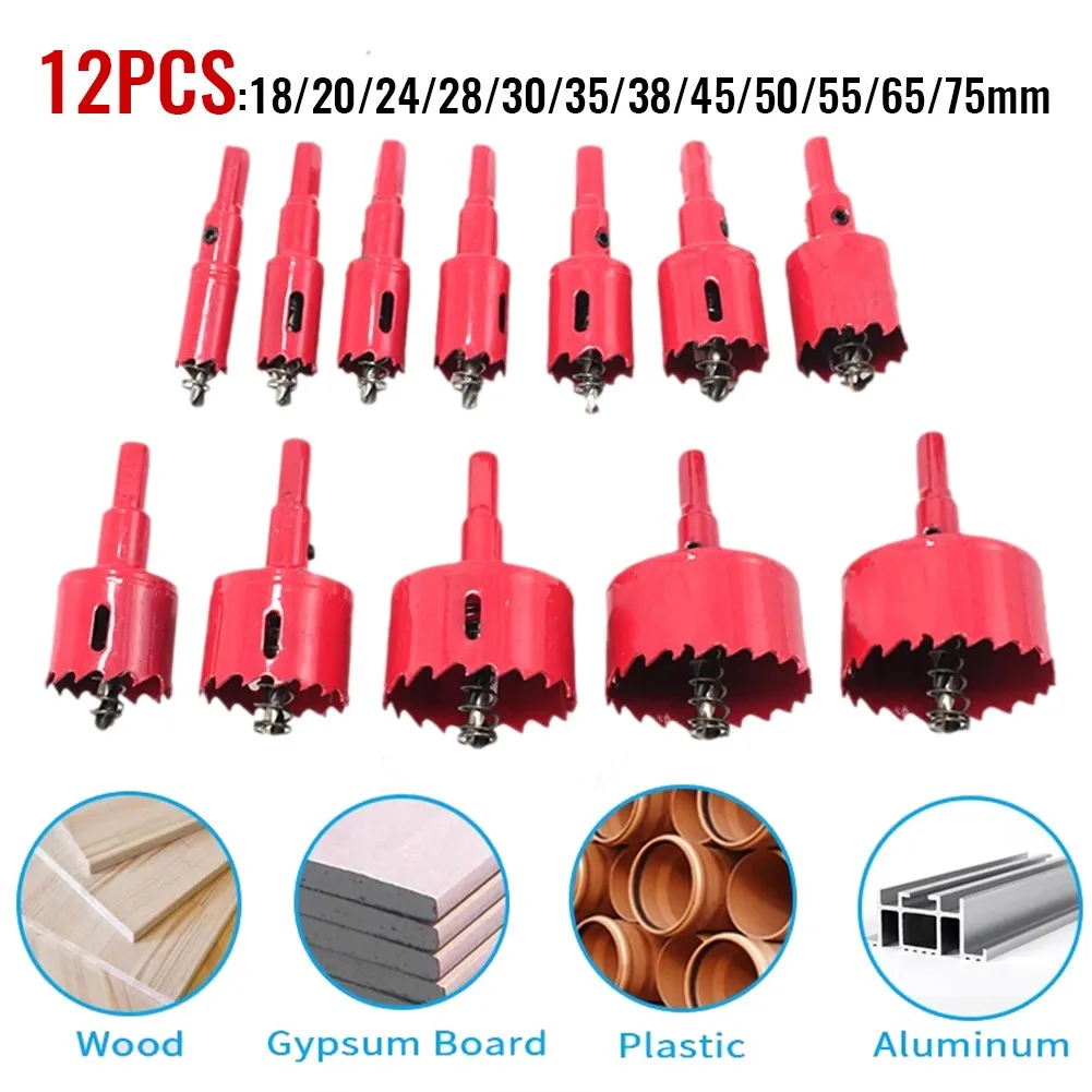 12 шт. 18-100 мм Кольцевая пила сверло зуб комплект HSS Металл пустотелого сверла диаманта Кольцевые пилы резак Мощность инструменты запасные части