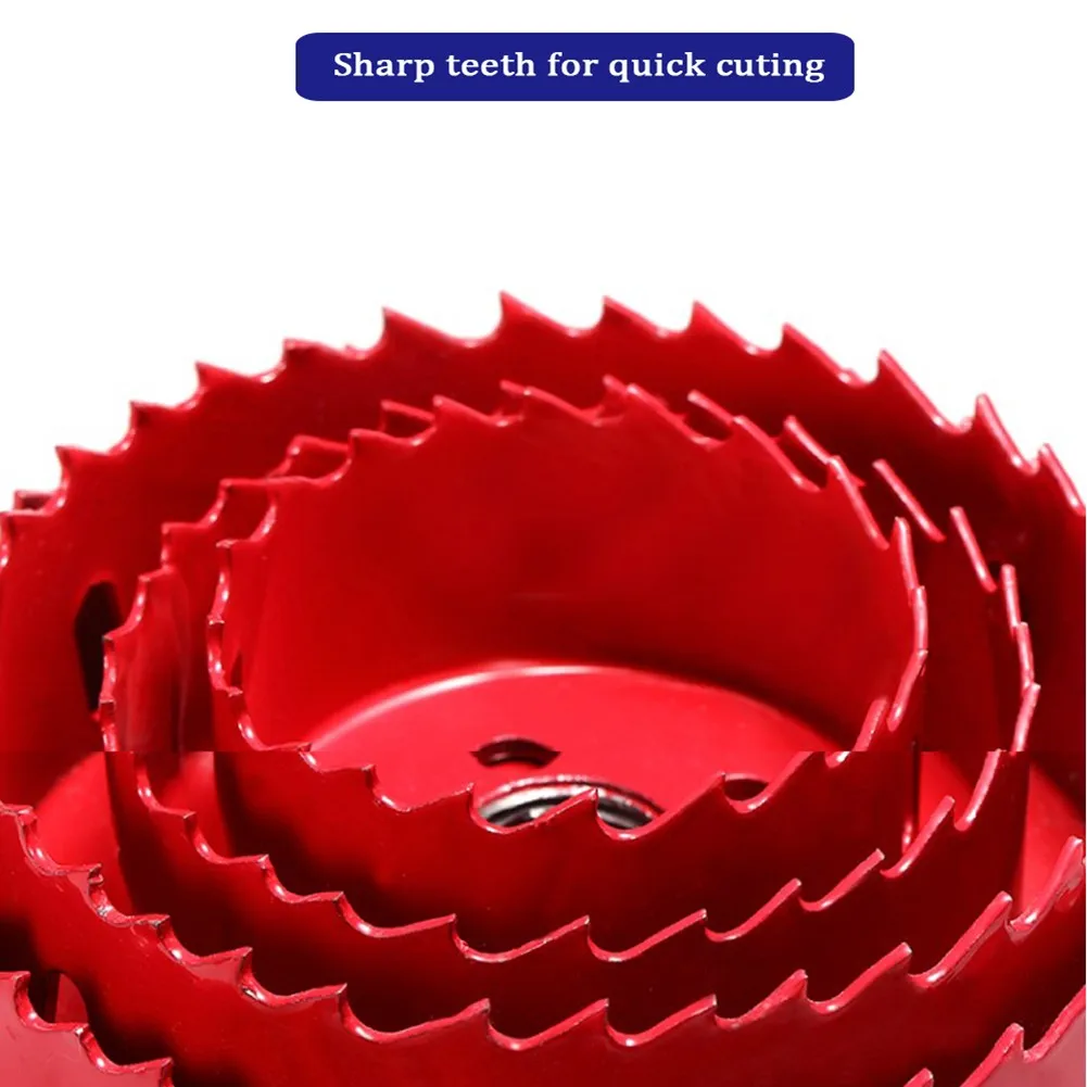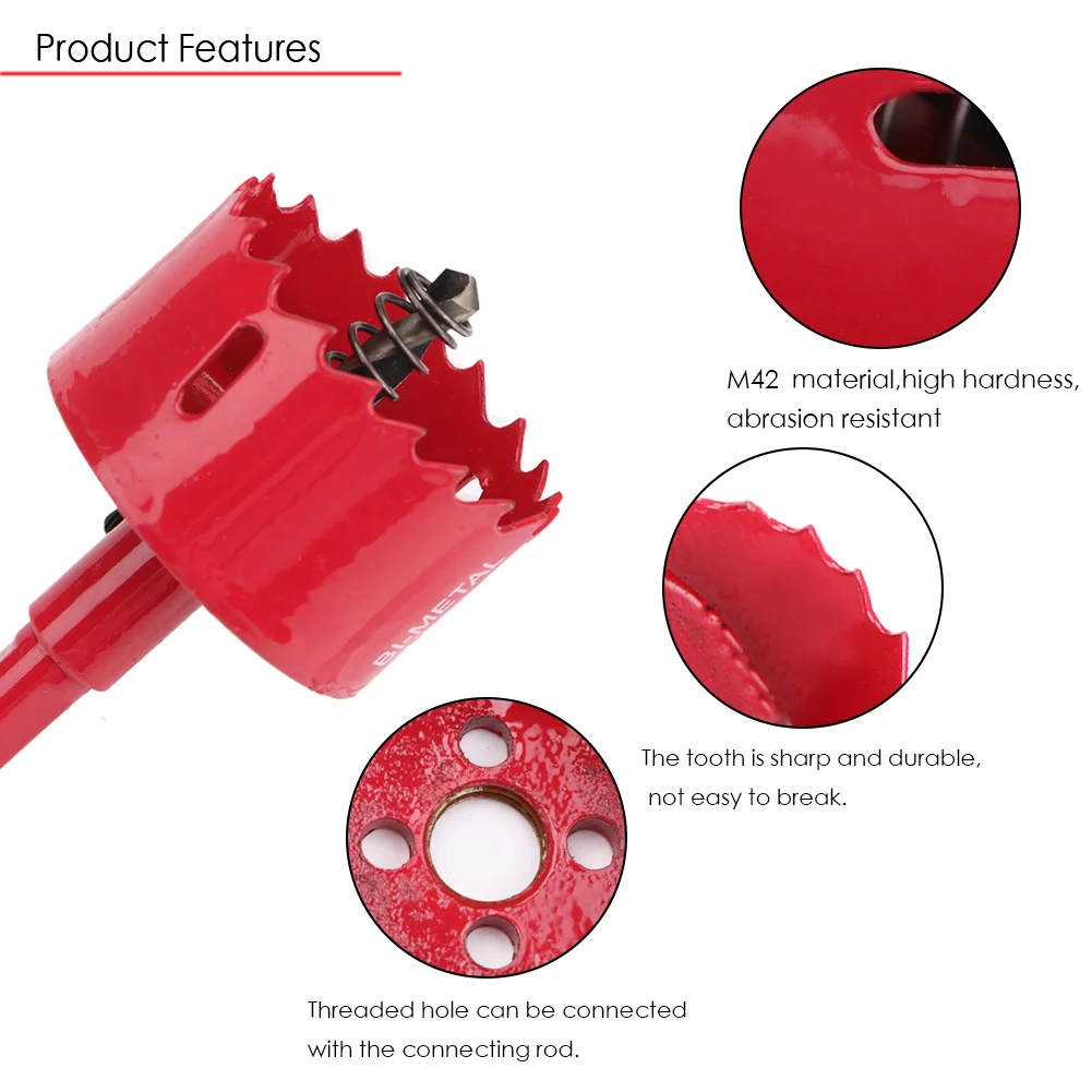 * Этот биметаллический Открыватель для отверстий изготовлен из материала M42, который сварен электронным пучком, а затем закален при высокой температуре. Зубы острые, прочные, не легко ломаются, и сверление стабильно.