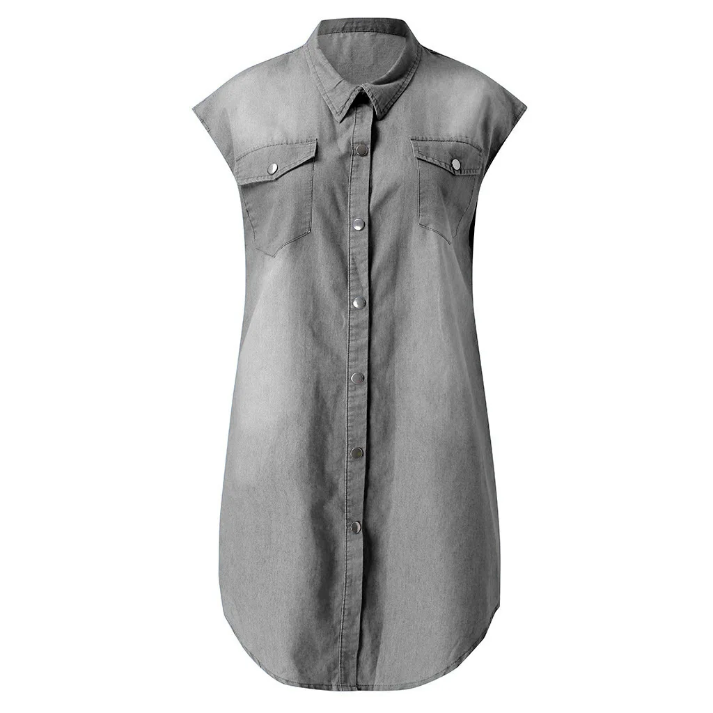 Летнее джинсовое платье в европейском и американском стиле с коротким рукавом и открытой грудью и карманами на пуговицах