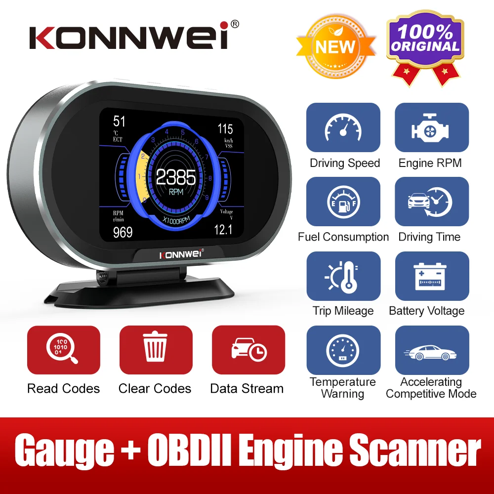 Компьютер KONNWEI KW206 OBD-это умный и мощный автоматический измеритель. Он специально разработан для всех транспортных средств в одном, чтобы показать все текущие данные на экране от спидометра, он также контролирует и отображает напряжение батареи, сигнал тревоги о превышении скорости, предупреждение о температуре двигателя, испытание на ускорение, А также считывает весь двигатель в режиме реального времени, считывает и стирает код неисправности двигателя, Это чрезвычайно полезный гаджет для каждого водителя в вашей повседневной жизни.