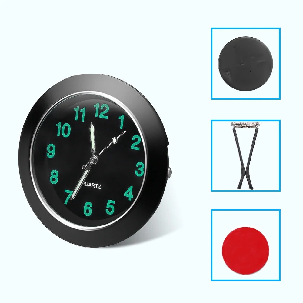 -Маленький и стильный, красивый мини-автомобиль Кондиционер жилет часы-Кварцевый механизм, Световой указатель-Диаметр: 1,7 '', ударопрочность, вибрация.-С клеевым клеем на задней панели, эти часы могут быть установлены в любом месте, где вы хотите, такие как офис, Приборная панель автомобиля, верстак или шкафчик.