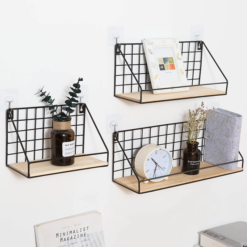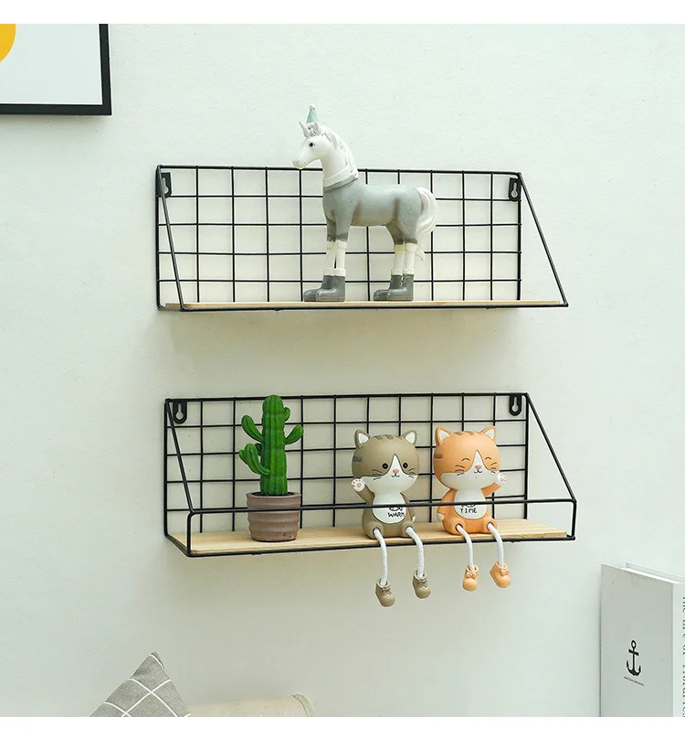 Железная решетка, настенная корзина, деревянный держатель, украшение для дома, настенная полка, органайзер для кухни, ванной, шкафа, полка для хранения мелочей