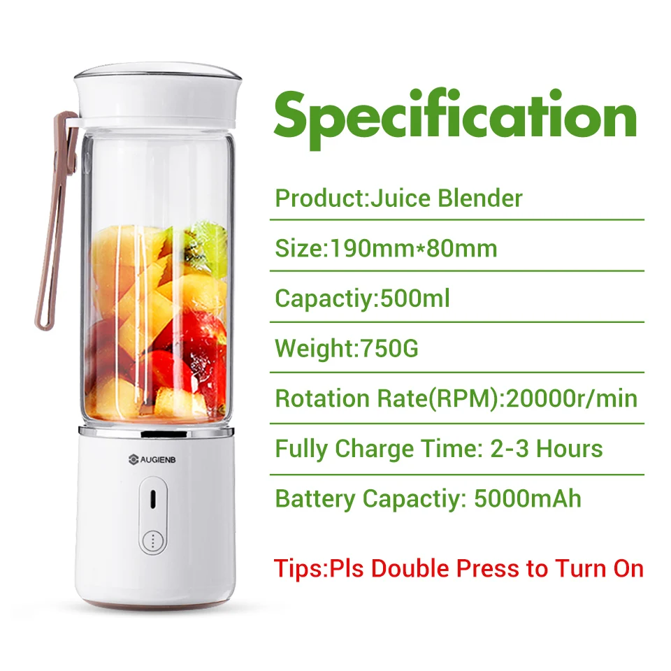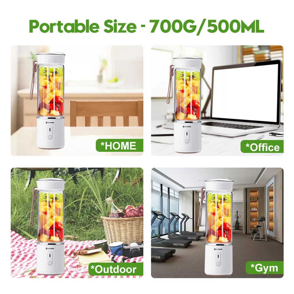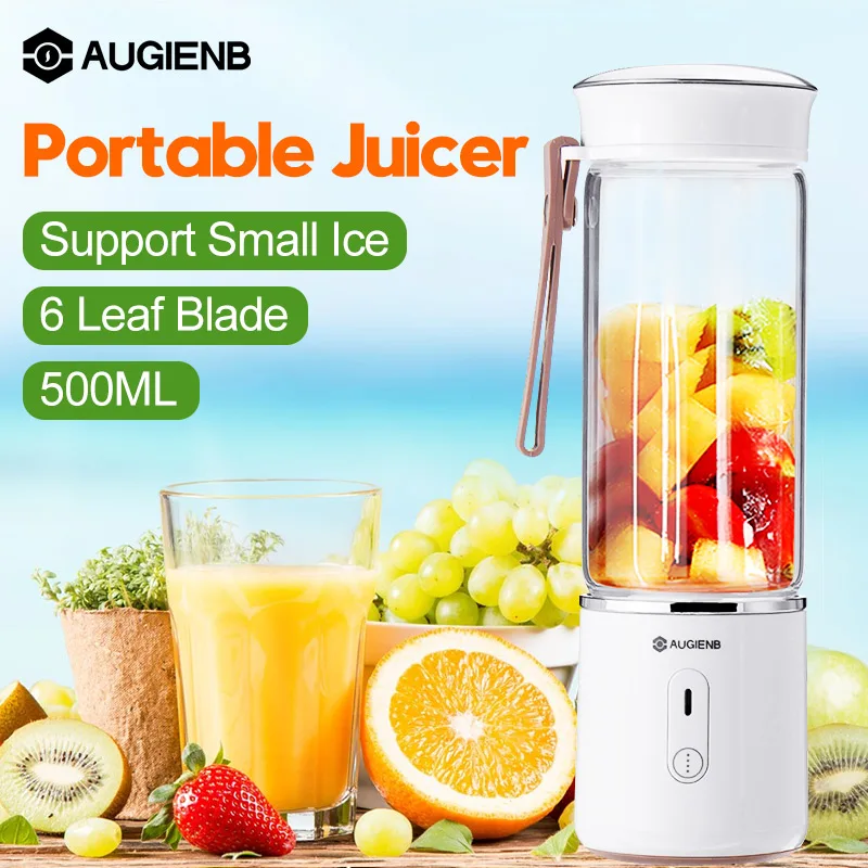 AUGIENB портативный персональный блендер, USB перезаряжаемая стеклянная соковыжималка, шесть лезвий в 3D, 500 мл с крышкой для путешествий маленький фруктовый блендер для коктейлей и смузи
