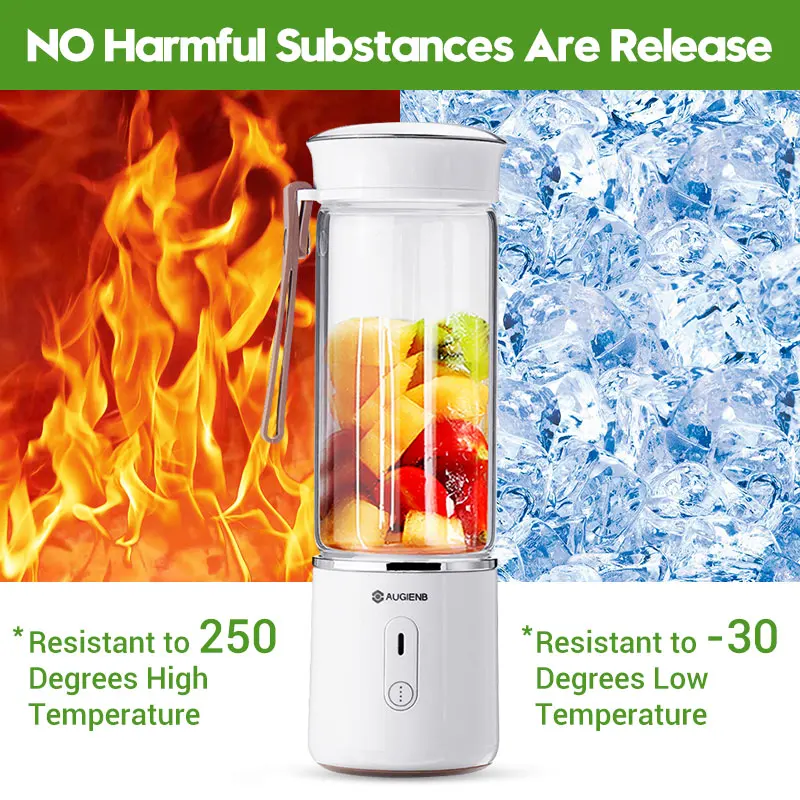 AUGIENB портативный персональный блендер, USB перезаряжаемая стеклянная соковыжималка, шесть лезвий в 3D, 500 мл с дорожной крышкой, маленький фруктовый блендер для коктейлей и смузи
