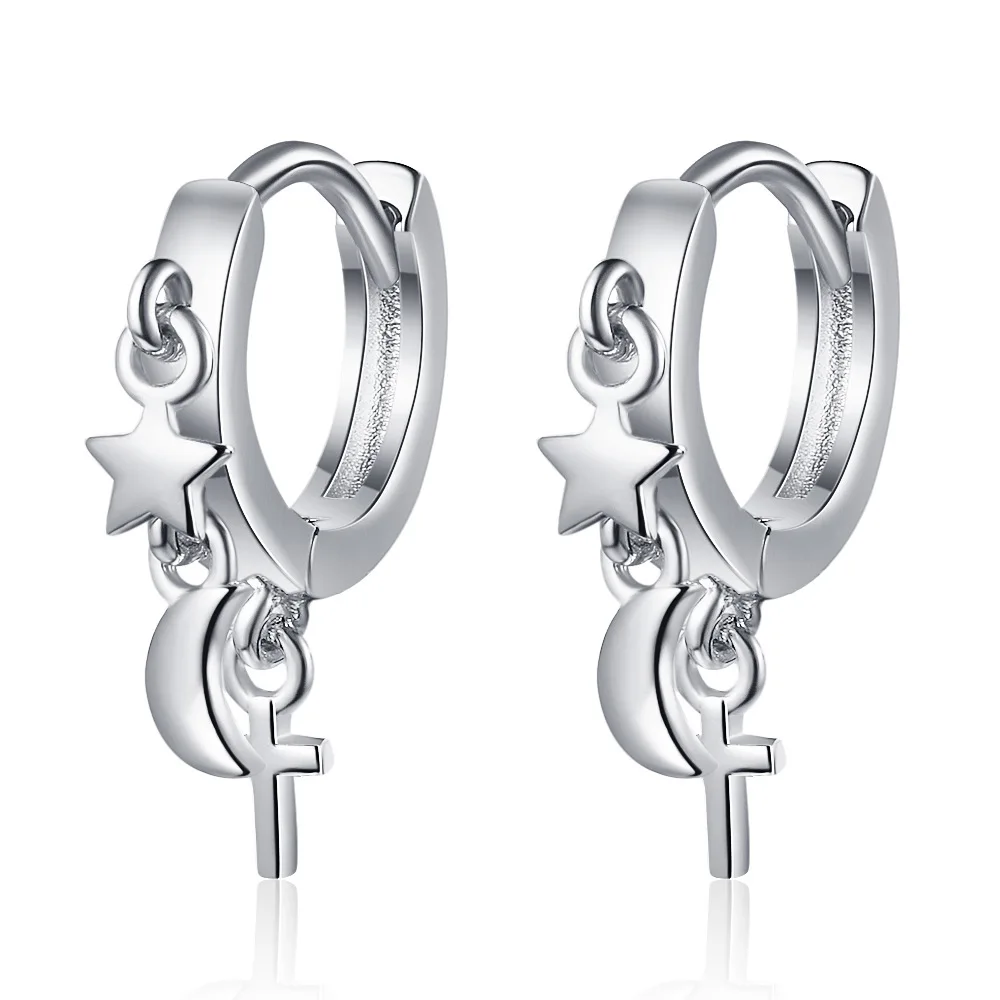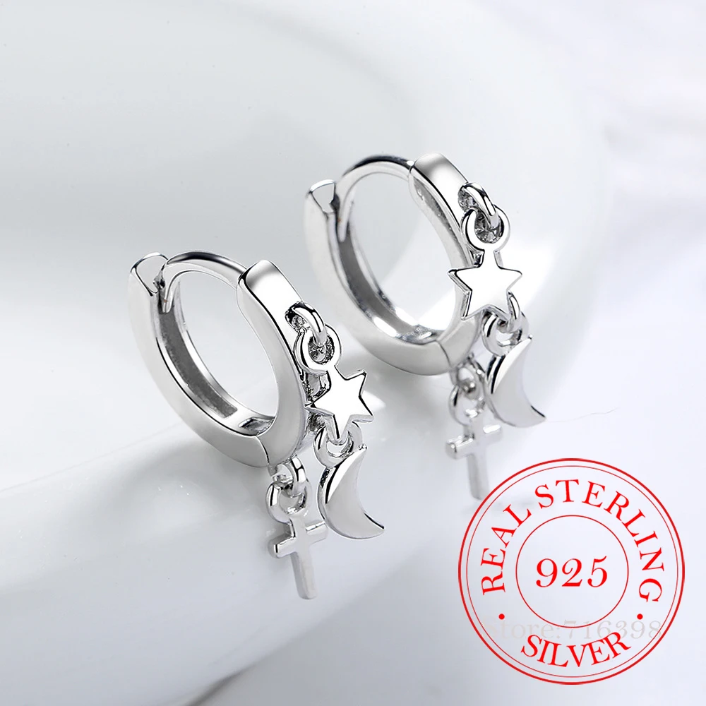 Милые серьги-кольца Huggie из стерлингового серебра 925 пробы для женщин, серьги-кольца со звездой, луной, ушками, ювелирные изделия для свадебной вечеринки, для детей, девочек, Aros Aretes