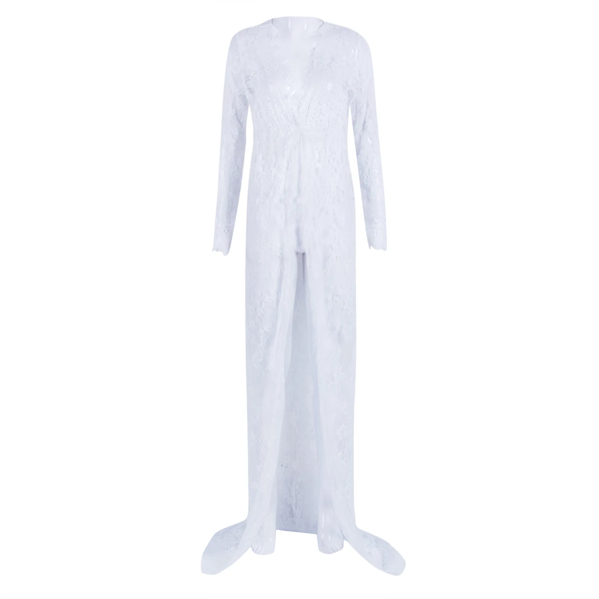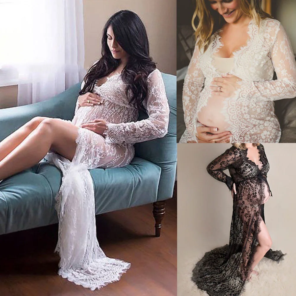 Женская одежда с разрезом длинное черное белое кружевное платье для беременных реквизит для фотосъемки летние прозрачные платья