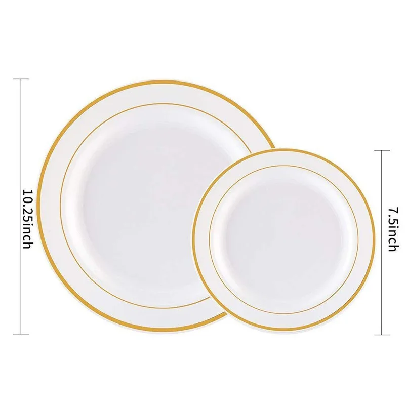 10 шт. Пластиковая Золотая одноразовая тарелка Золотая посуда 7,5 дюймов 10,25 дюймов пластиковая тарелка для банкета, свадьбы, дня рождения, вечеринки