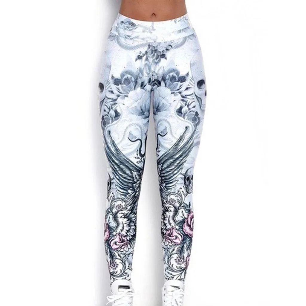 Женские облегающие леггинсы Goth с принтом черепа, эластичные джеггинсы с высокой талией для тренировок и бодибилдинга, штаны для фитнеса