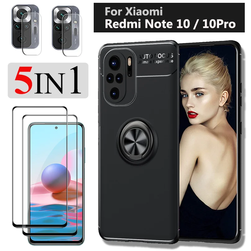 Комплект чехлов для Redmi Note 10, защитное стекло + чехол с кольцом, ударопрочный чехол Redimi Note 10 для Xiaomi Redmi Note10 Pro 10 S 10 5G