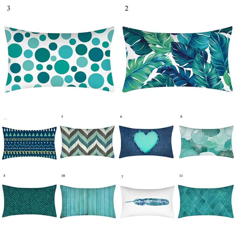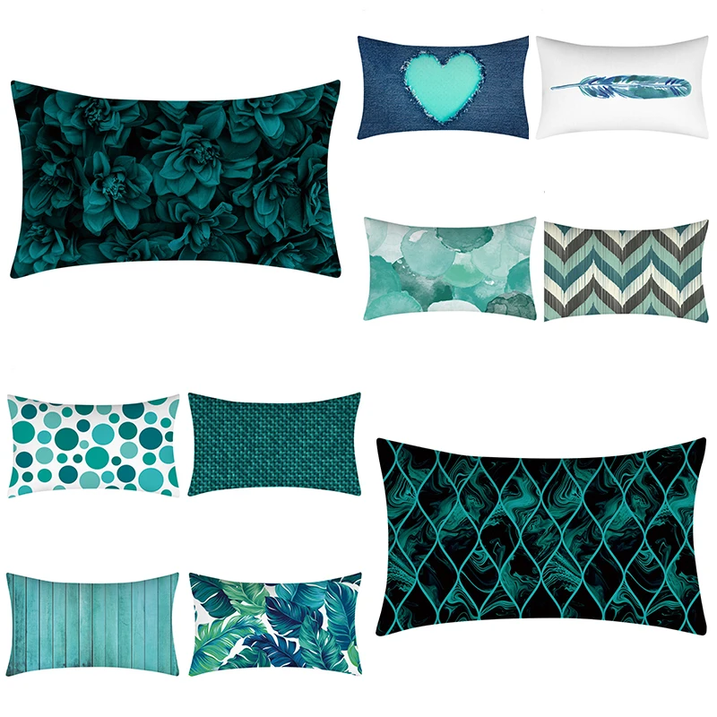 Чехол для подушки 30*50 см, сине-зеленая декоративная наволочка для...