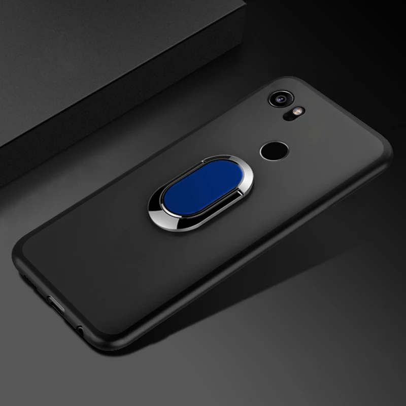 Чехол для Google Pixel 2 XL 2XL, красный, синий, черный, Классический чехол с кольцом на палец, мягкий силиконовый чехол с вращением на 360 градусов