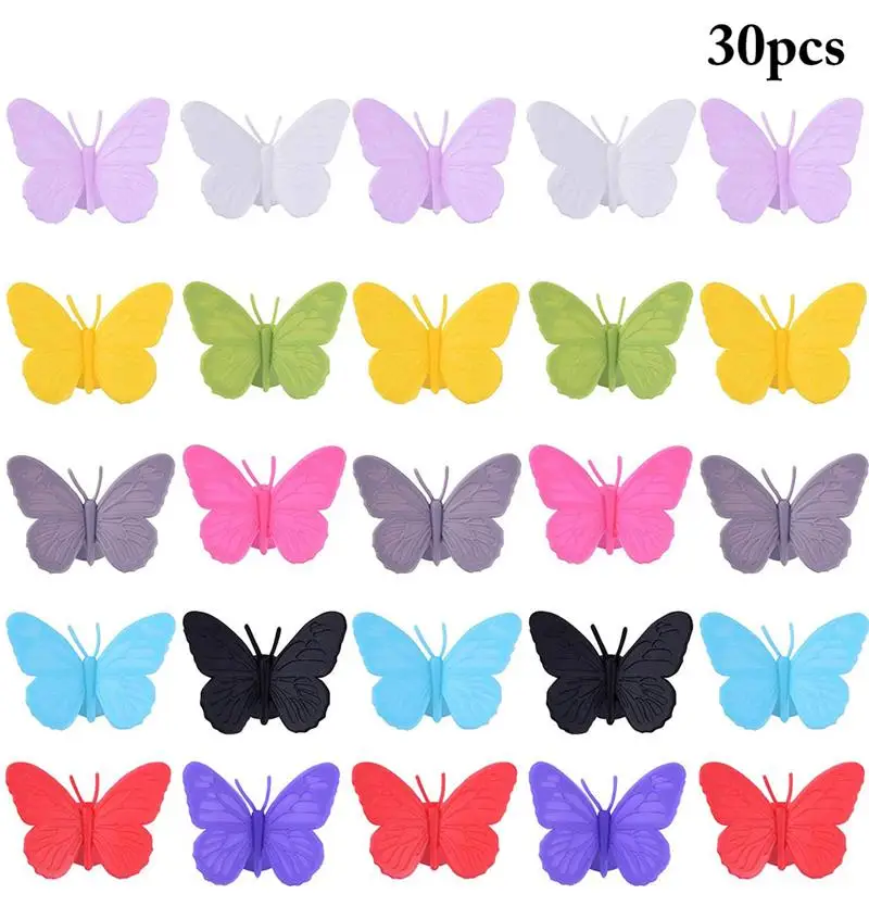 30 шт., бокал для вина, Очаровательная креативная силиконовая присоска в форме бабочки, маркер напитков вечерние бокалы для вина, декоративные идентификаторы
