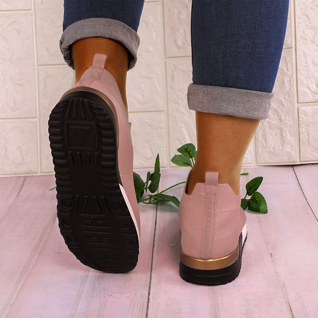 Кроссовки женские без шнуровки, Вулканизированная подошва, вязаные,...