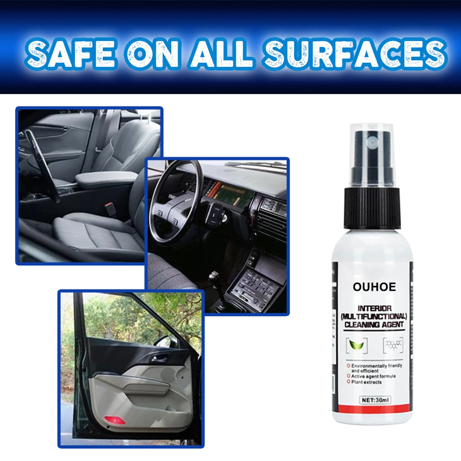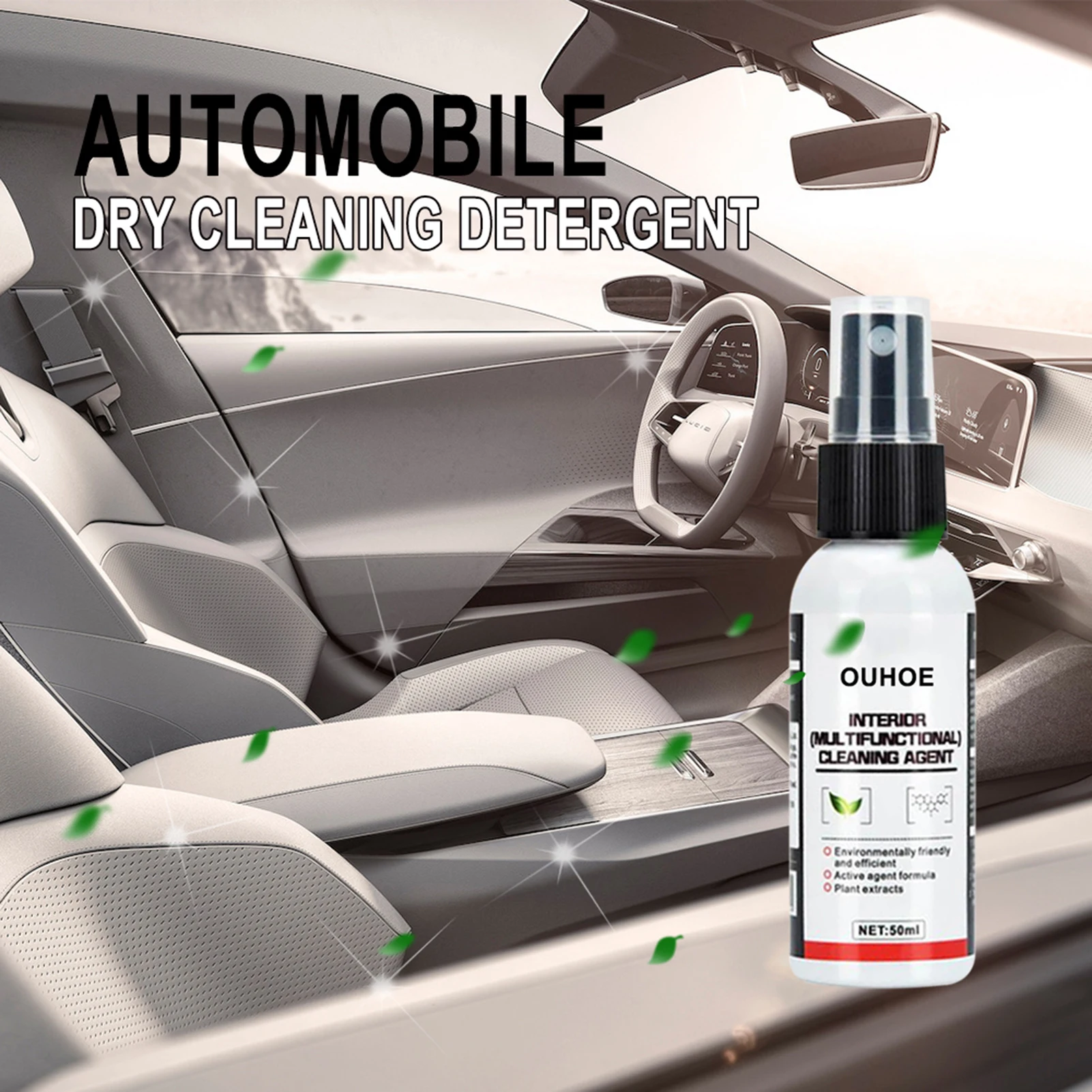 OUHOE 50 мл многофункциональное средство для чистки интерьера автомобиля, автомобильное сухое моющее средство, моющее средство для сухой чистки