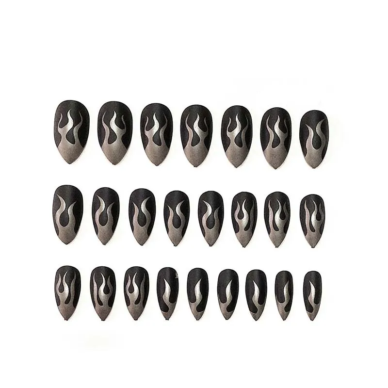 Накладные ногти с пламенем, матовые, с узором в виде огня, накладные ногти для девочек, 24 шт., декорации ручной работы
