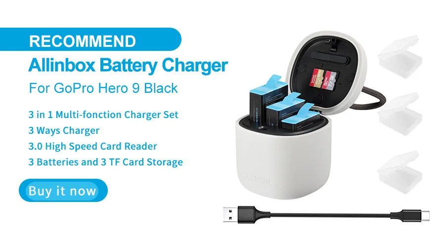 1. Gran capacidad de 1750mAh, mus rallador que la Bateria original 2. Hasta 112 min de tiempo de disparo con una sola Bateria (el tiempo de uso es diferente en diferentes modos). 3.100% ajuste perfecto para GoPro Hero 9 negro, sin pop-ups. 4. Cargador de cuadrado a Redondo, mejor agarre, futher tan cómodo al tacto como la piel del bebé. 5. Nueve protecciones, uso seguro, Bateria y cargador seguros. 6. Tres baterias carga y almacenamiento a la vez, soporta hasta dos tarjetas TF y tres baterias. 7.2.4A corriente alta, una carga completa solo tarda 2,5 h. 8. Ranura para tarjeta de silicona, almacenamiento y mejor protección. 9. Apertura magnética y cierre, la cubierta utiliza un funcionamiento magnético, simple y robusto. 10. Alfombrilla de silicona antideslizante, uso en la parte nift para evitar caitas, mus seguridad. 11. Intertaz tipo c, soporte para inserciones hacia adelante y hacia atrаs, no se requieren кабели адаптируются. 12 se muestra claramente, aclara el estado de la Bateria, la Bateria llena tiene luz verde siempre encendida, cerca de todo esta la luz amarilla permanece en la luz azul respira, la carga es la luz roja permanece en la luz azul respira, el modo de espera es la luz azul siempre encendida. 13. Cabe fаcilmente en una mochila, no ocupa mucho espacio.