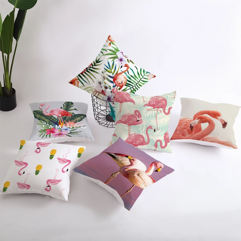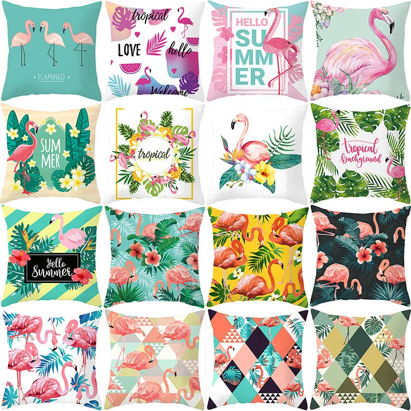 Животное подушка "фламинго" крышка 45X45 зеленых растений цветы декоративная наволочка диванные подушки лета Чехлы для домашнего декора