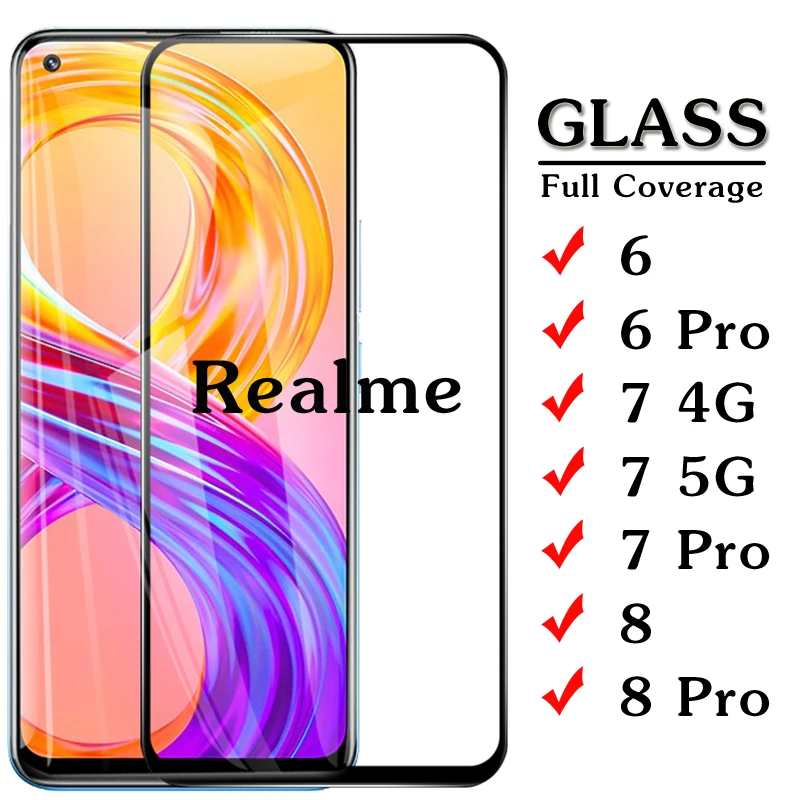 1-2 шт. полное покрытие закаленное стекло для Oppo Realme 8 7 6 Pro 8pro Защитная пленка для экрана Realme 8 7 6 чехол для телефона 6,4 дюймов