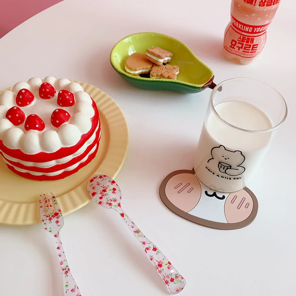 2 шт./компл., милые Мультяшные подставки, посуда, водные горки, офисные Нескользящие Коврики для кофейных чашек, кухни, рабочего стола, декоративная посуда, силиконовые коврики 25