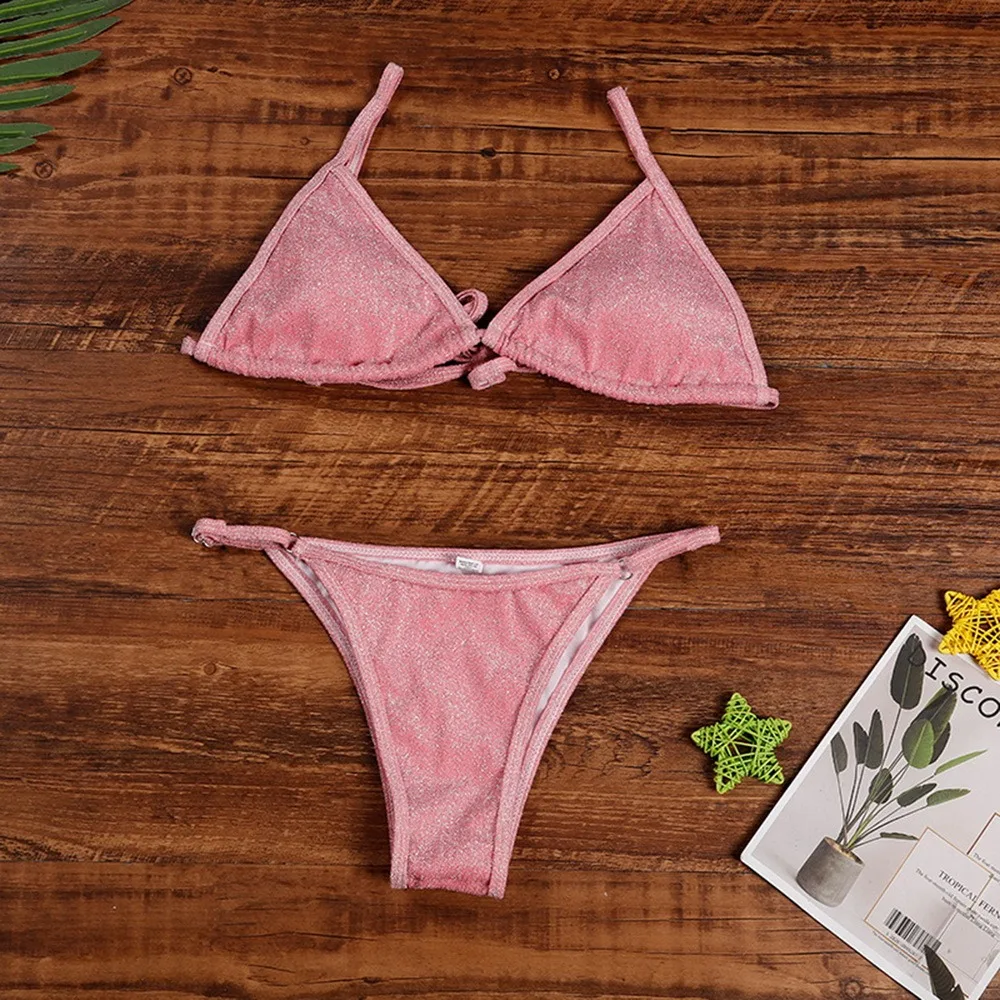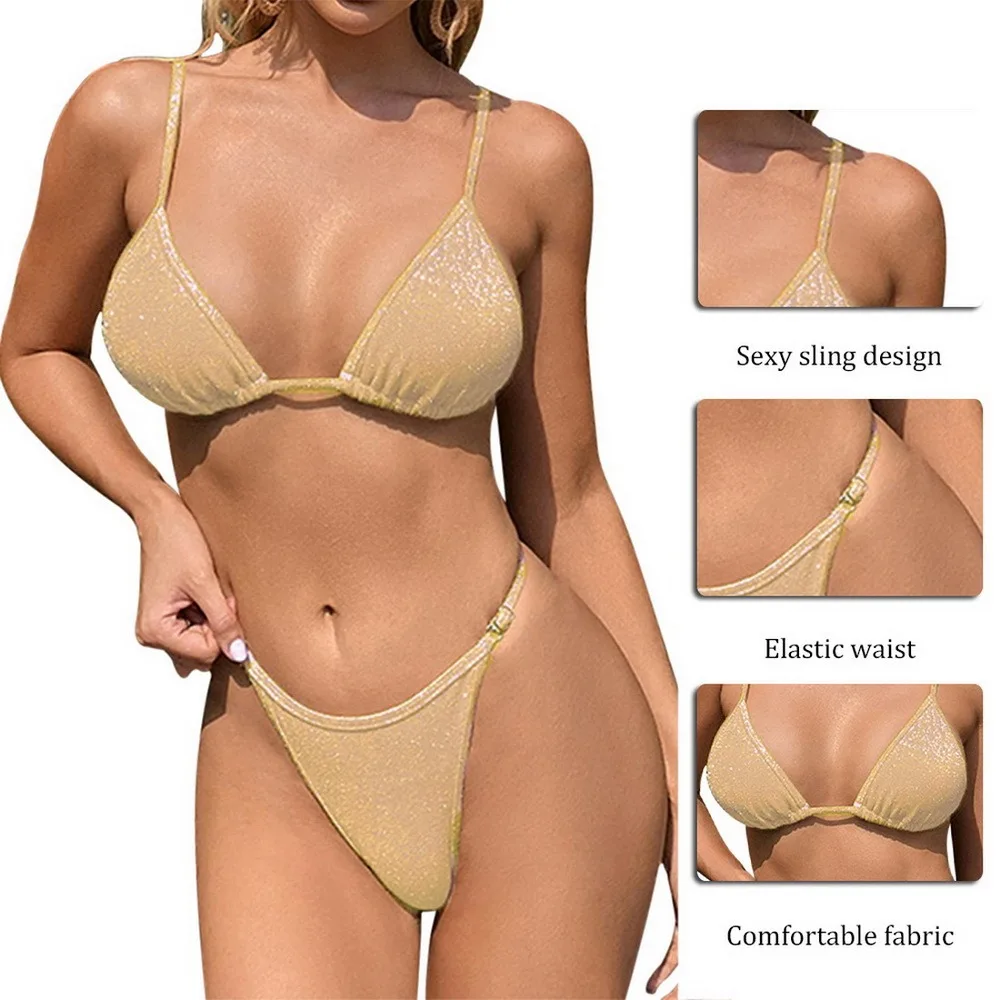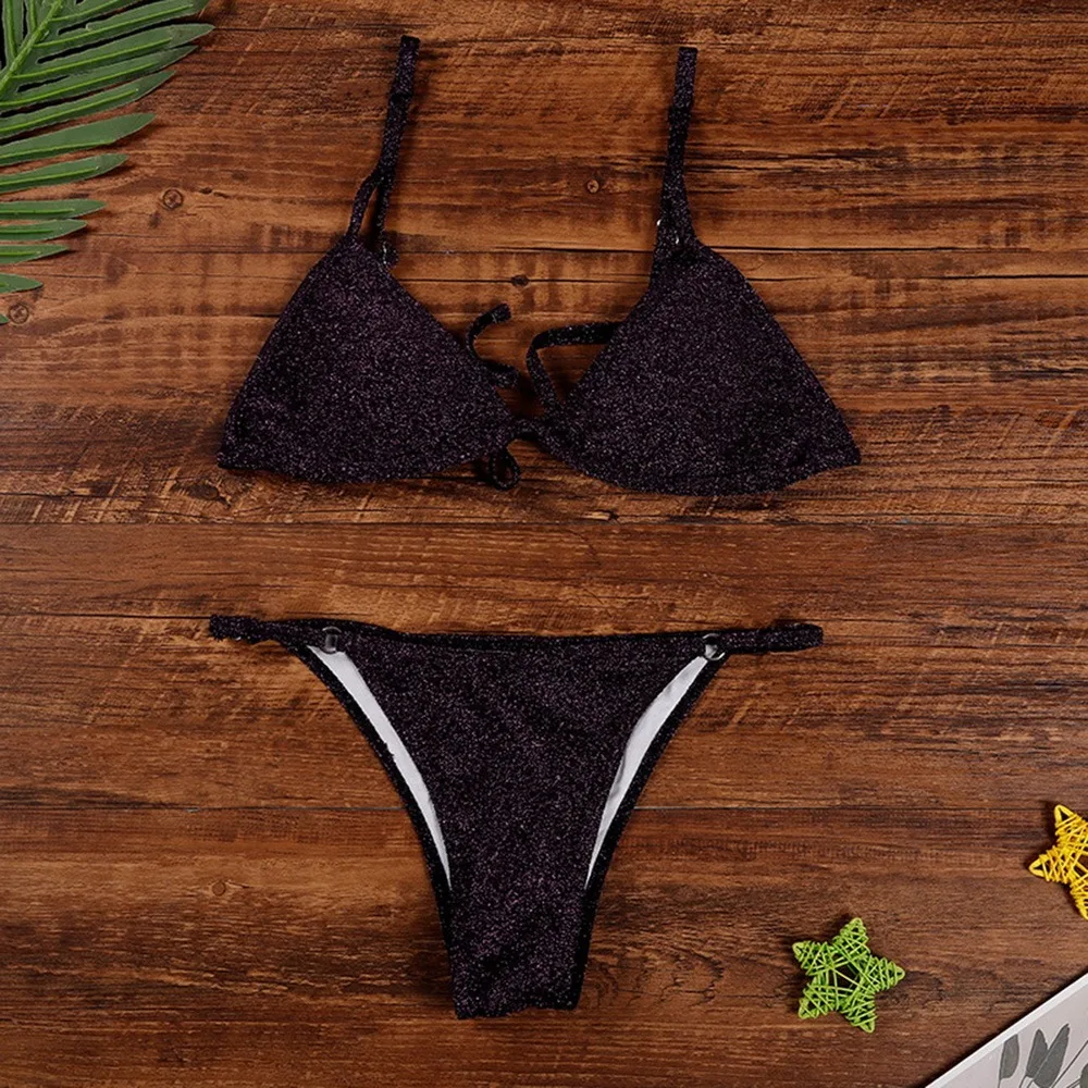 Сексуальное бикини с низкой талией, блестящий купальник, купальник пуш-ап, женский бюстгальтер с мягкими чашечками 2021, микро-бикини, регулируемые стринги, пляжная одежда из двух предметов