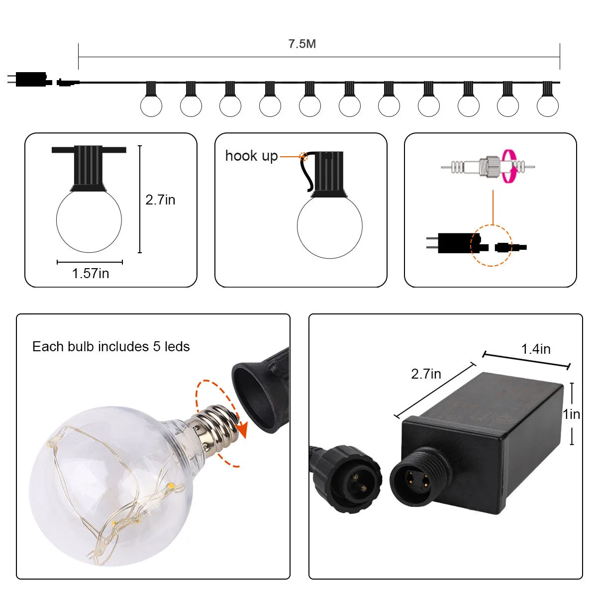 Гирлянда G40 25FT для внутреннего дворика, Рождественский шнурок с ...