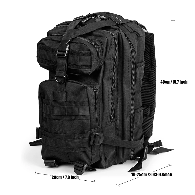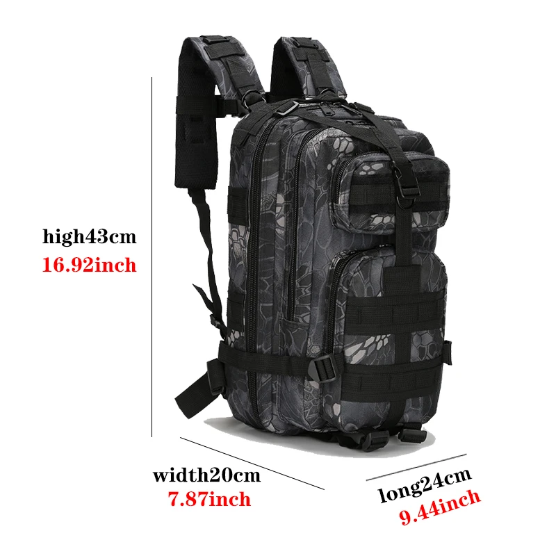 Состояние товара: 100% новый брендМатериал: водонепроницаемый NylonColor: черный, армейский зеленый, хаки, CP,Snake,ACUВместимость: 20-30lрюкзакиТип: софтбэкПодходит для: кемпинга, походов, альпинизма, охотыРазмер (Д * Ш * В): 20*25*40 см/7.87x9.84x15.74Содержание: 1 рюкзак для улицы