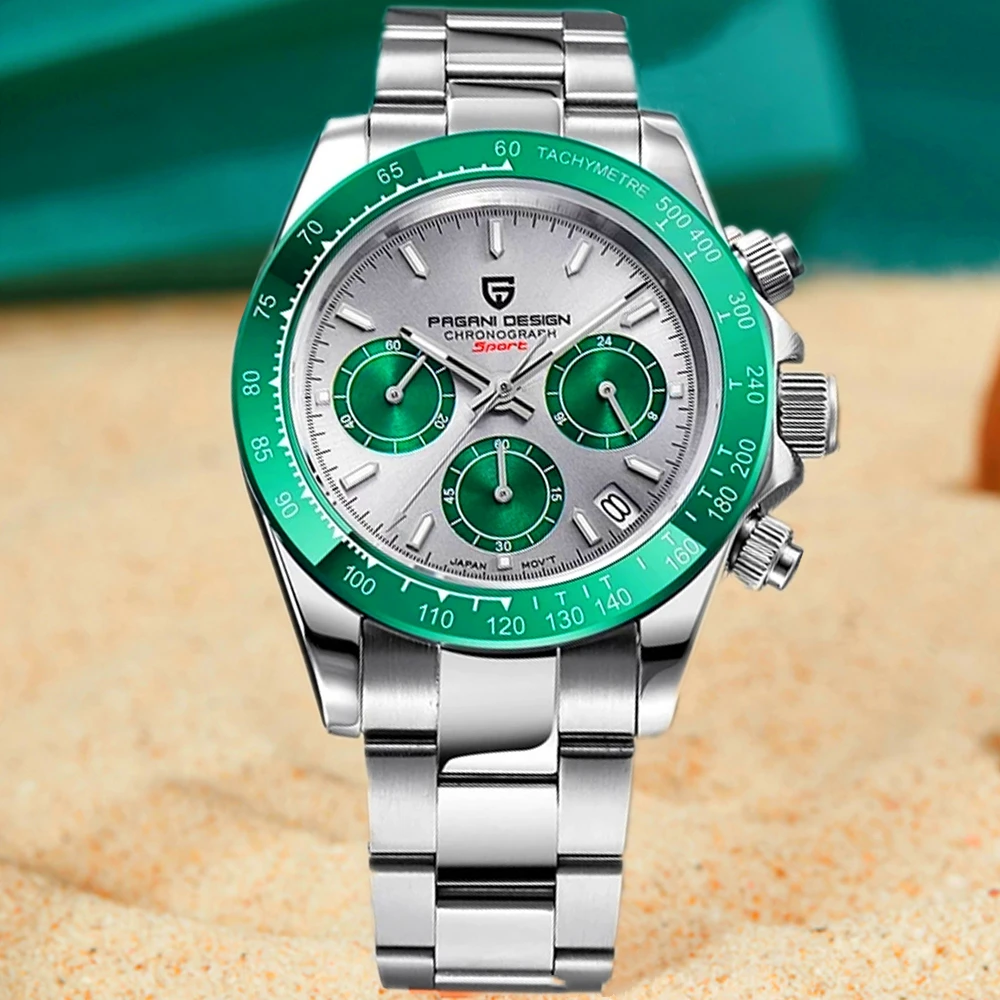 Часы PAGANI Мужские кварцевые с сапфировым стеклом, модные дизайнерские водонепроницаемые до 100 м, из нержавеющей стали