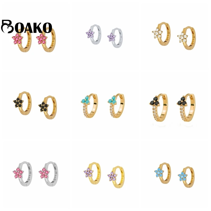Женские серьги-кольца BOAKO18k, серьги-кольца с цирконом черного/фиолетового цвета, ювелирные изделия, подарок