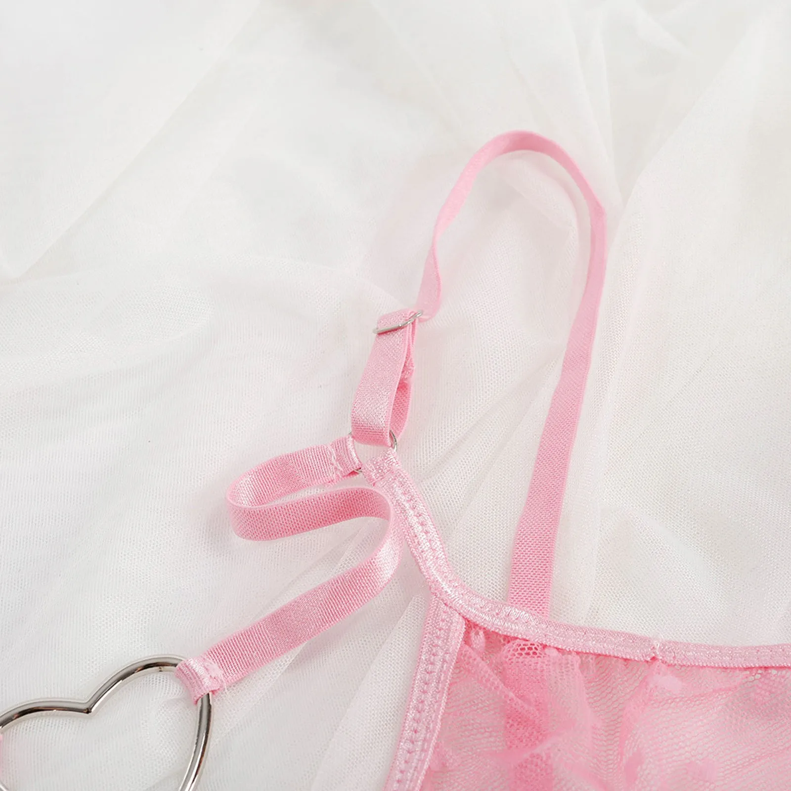 Комплект женского сексуального нижнего белья с принтом сердца, кружевной сетчатый бюстгальтер, стринги, пижама, комплект нижнего белья, ночная рубашка, внутренняя Женская одежда A30