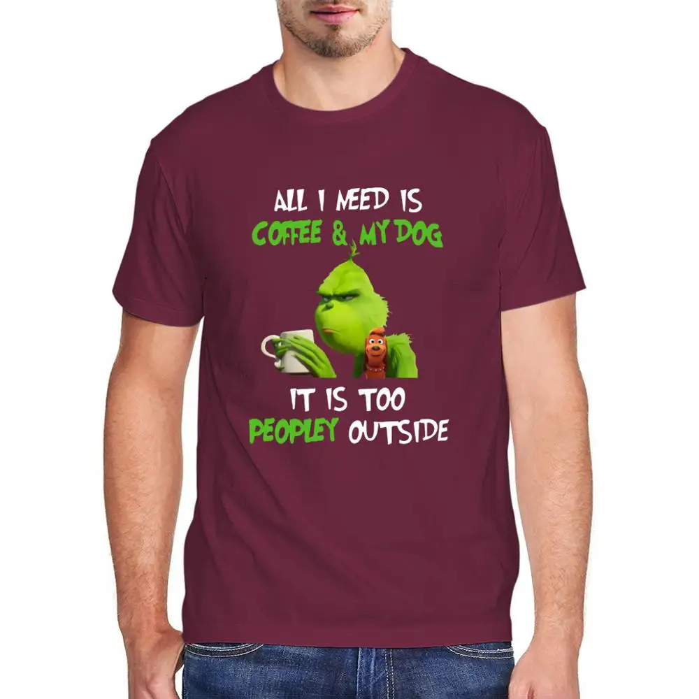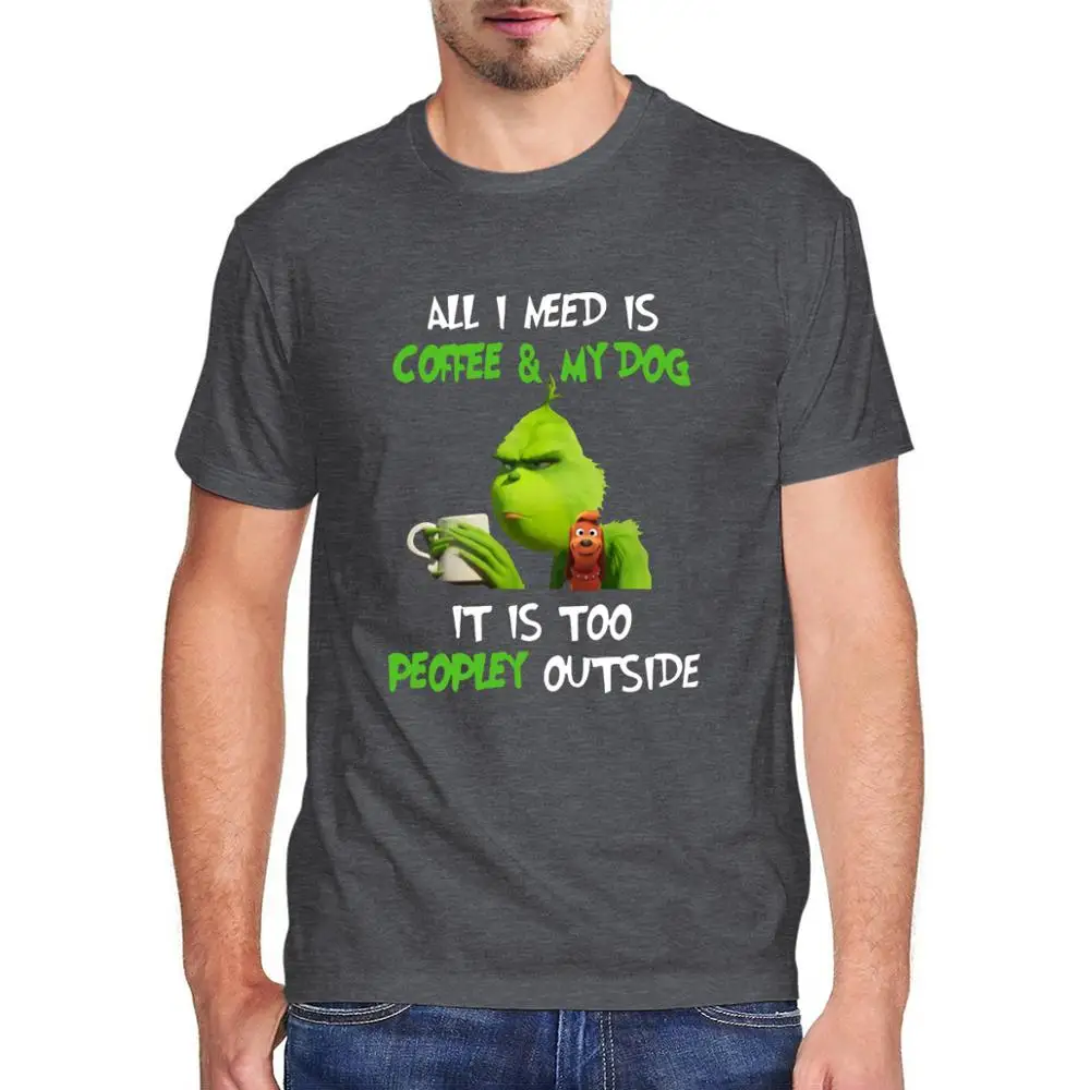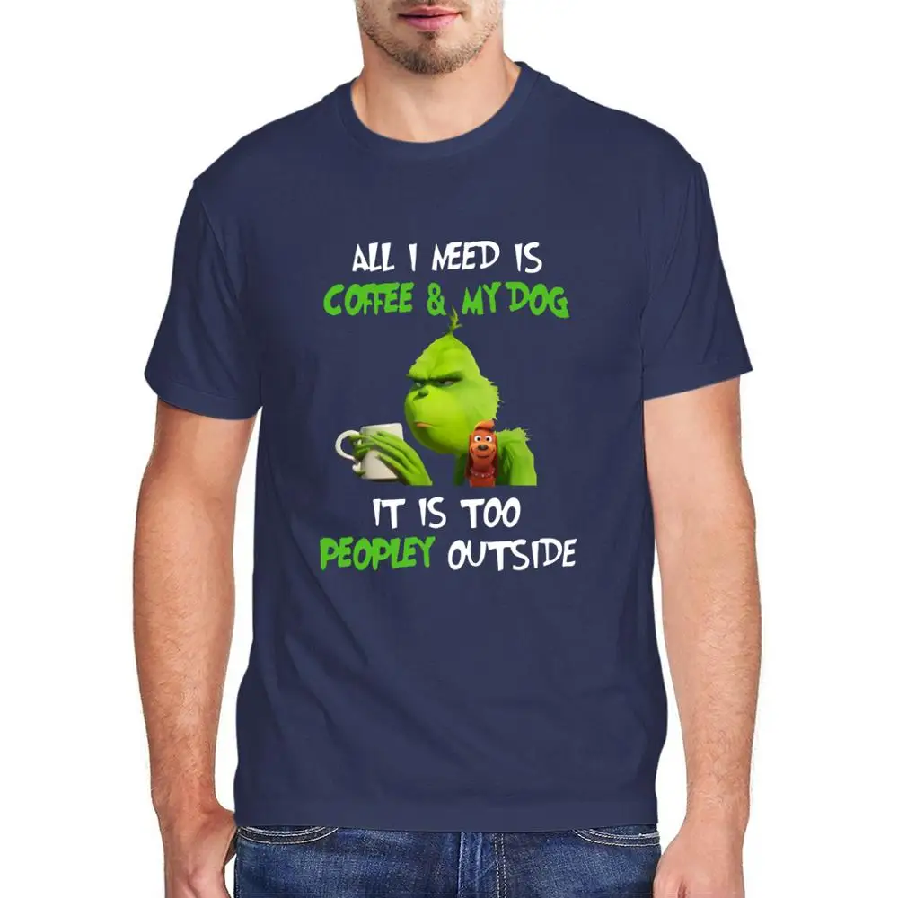 Унисекс Mr Grinch все, что мне нужно, это кофе и моя собака, это слишком легкая забавная графическая Мужская футболка из 100% хлопка, модная женская футболка