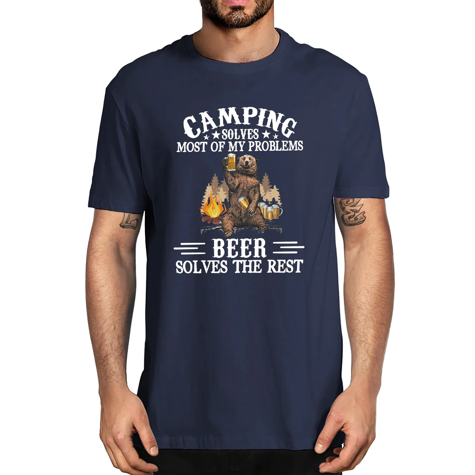 Футболка унисекс для кемпинга, решает большинство моих проблем, пиво решает остальное, винтажная забавная Мужская футболка из 100% хлопка, Новинка