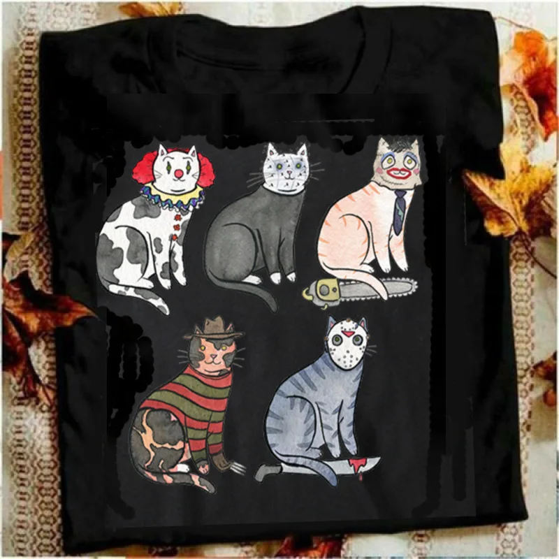 Мужская рубашка с забавным котом из фильма ужасы на Хэллоуин