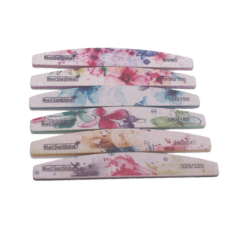 Пилка для ногтей в стиле Луны, пилочка для ногтей 80, 100, 150, 180, 240, 320 Грит, цветочный принт, Профессиональная пилочка для ногтей, 6 разных размеров