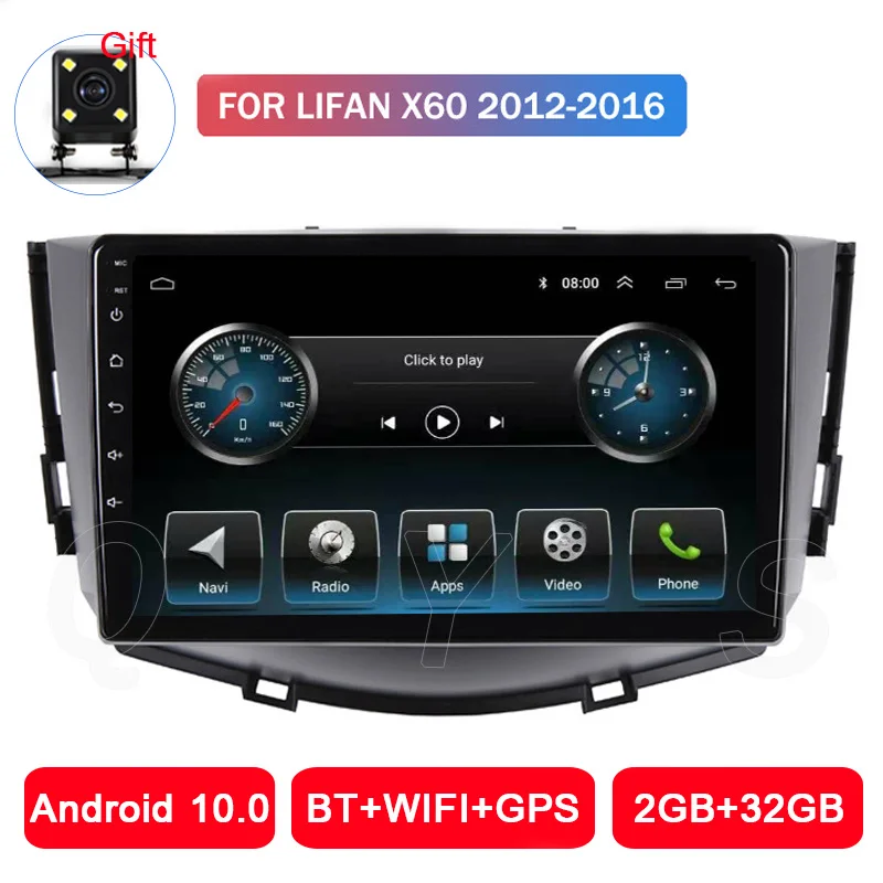 Автомобильный радиоприемник 2 + 32 ГБ Android 10, мультимедийный видеоплеер, навигация GPS для Lifan X60 2012 2013 2014 2015 2016, сенсорный экран BT WIFI