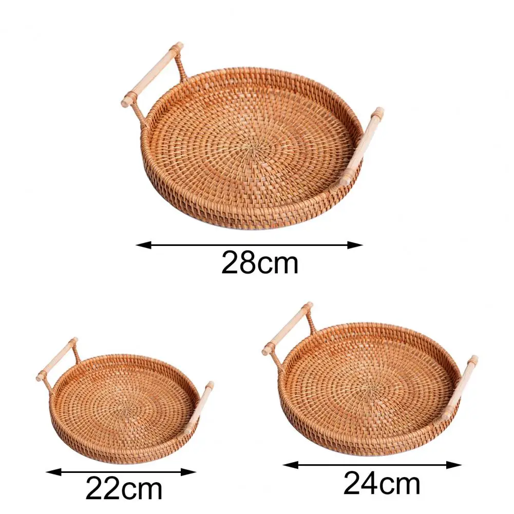 Ручной круглый лоток из ротанга для фруктов и овощей, органайзер для хранения закусок, корзина с ручкой, кухонные гаджеты, принадлежности