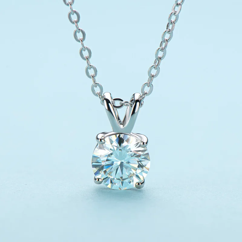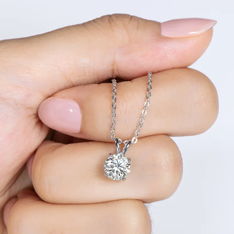 Цепочка с кулоном из серебра 100% пробы с муассанитом 6,5 мм