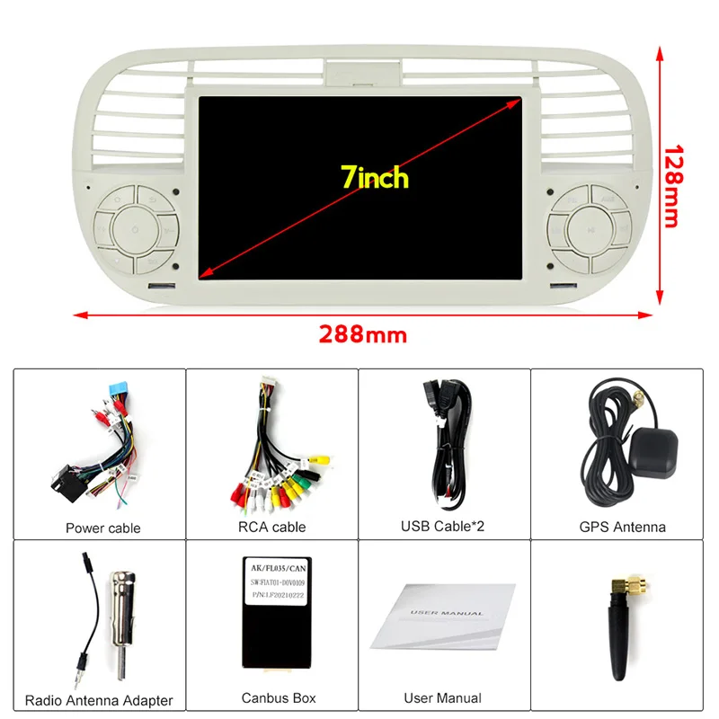 7-дюймовый четырехъядерный автомобильный DVD-плеер на ОС Android 10 для Fia 500, радио, GPS, DSP, Wi-Fi, BT, управление на рулевом колесе, стерео, мультимедиа, Carplay, авто