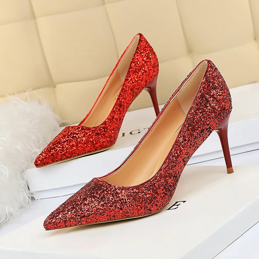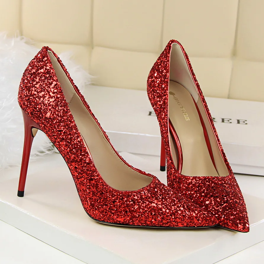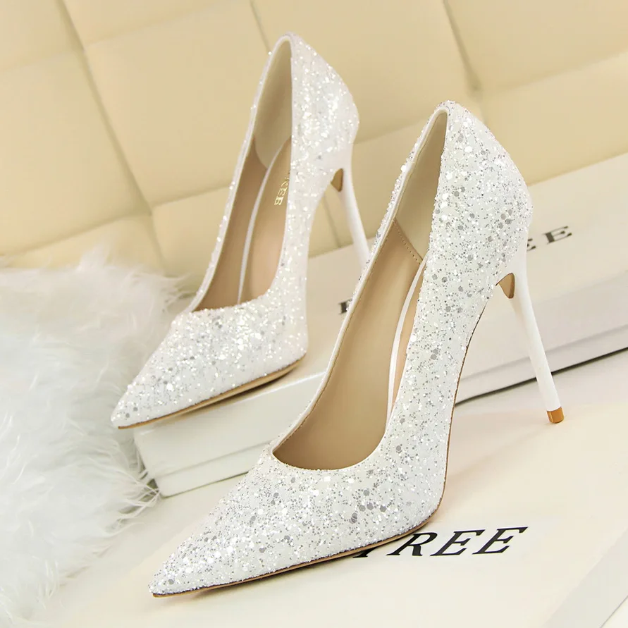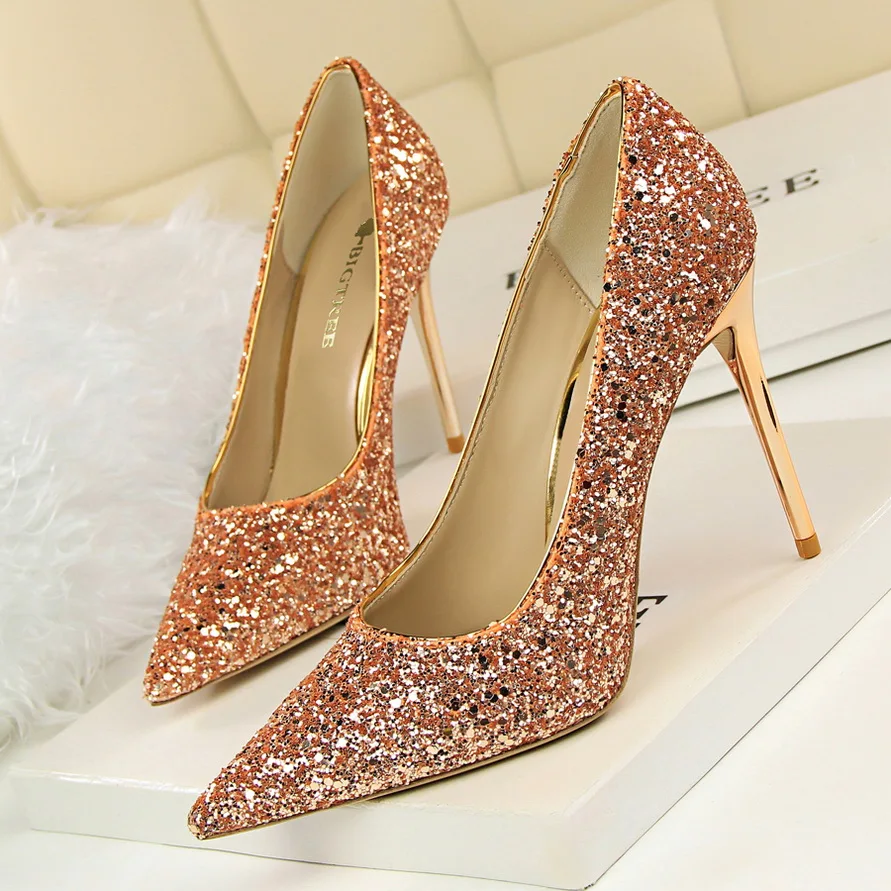 Женские туфли на шпильке 2021 см, туфли-лодочки с острым носком, блестящие Роскошные привлекательные вечерние туфли золотого и серебряного цвета для свадьбы, 9,5