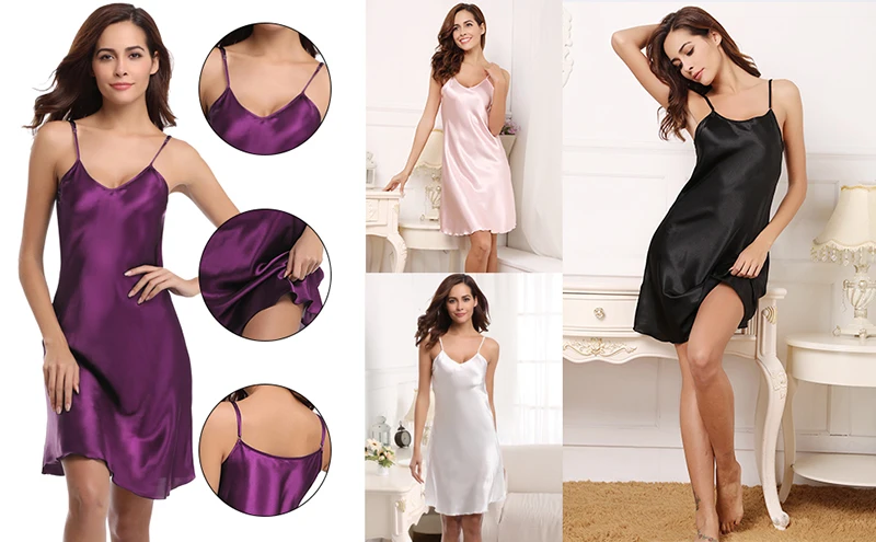 Ночная сорочка Женская атласная, пикантная Ночная рубашка на тонких бретельках, пикантная Ночная рубашка без рукавов, ночное белье, на лето
