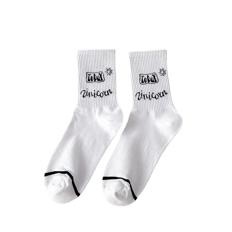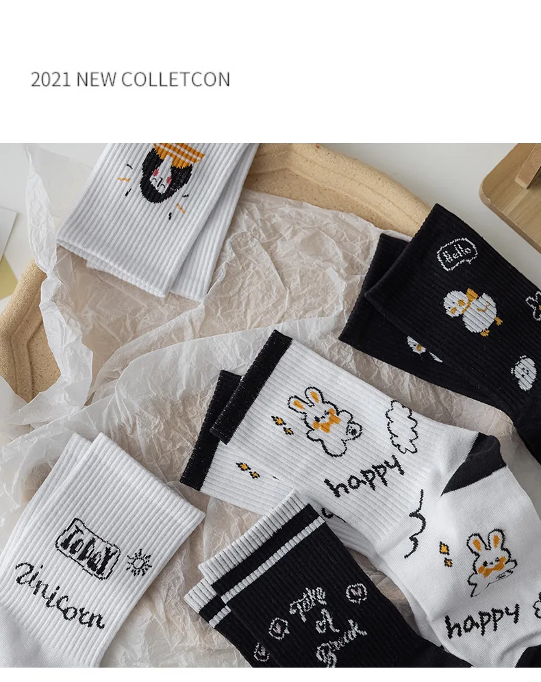 Мужские и женские носки kawaii cloud bunny, принт утки, веселая планета, летающая тарелка, забавная пара, черно-белые носки