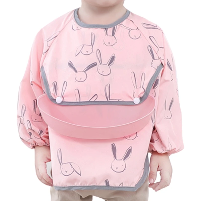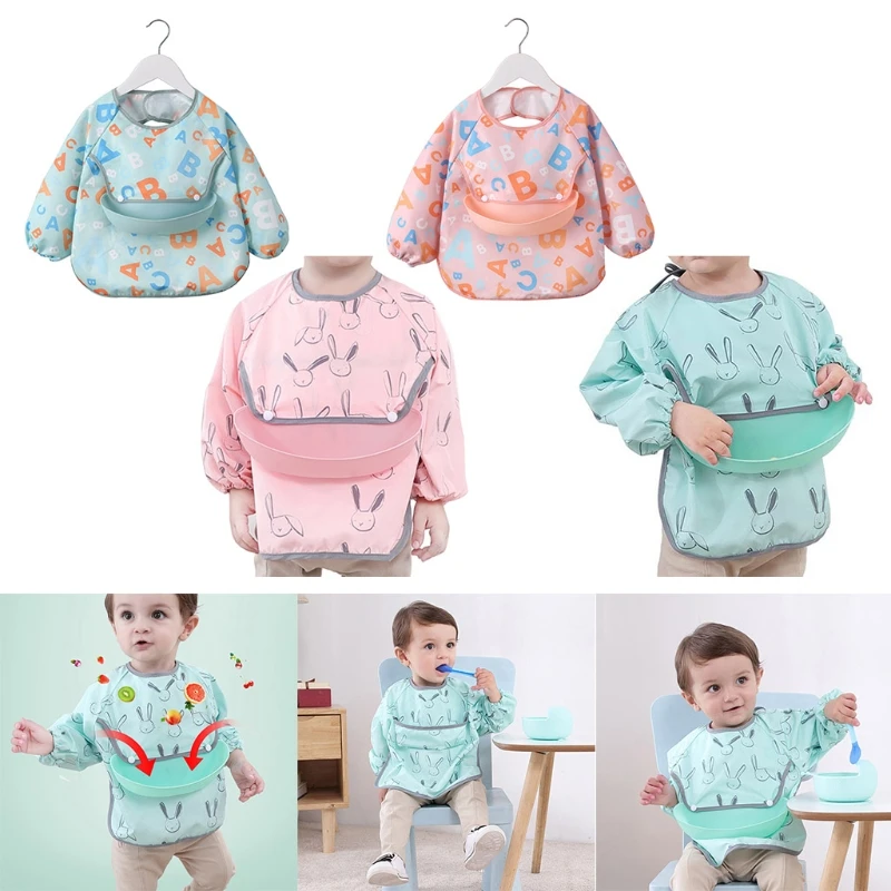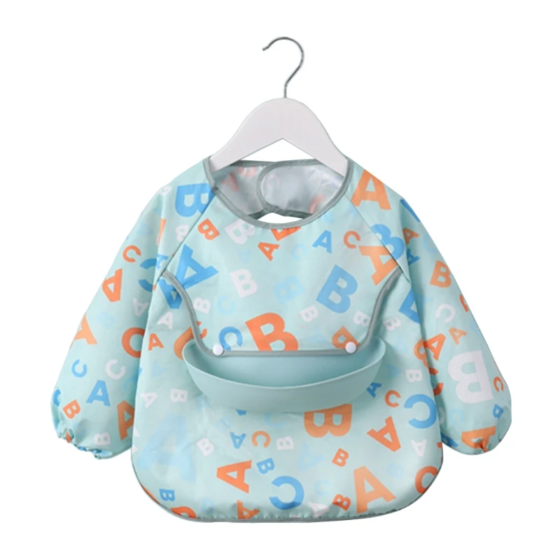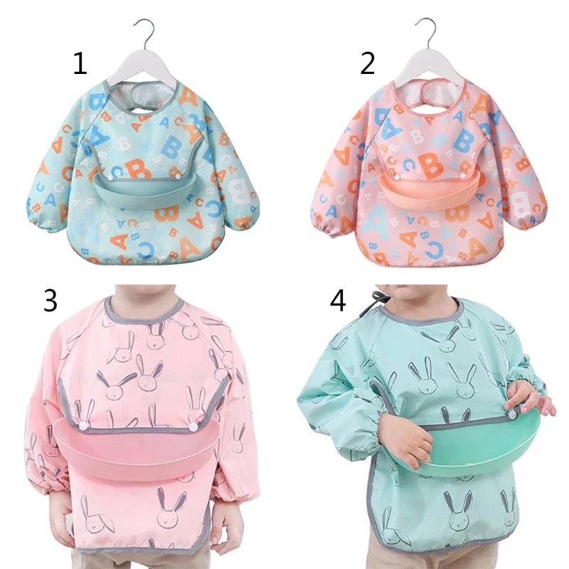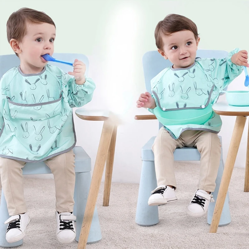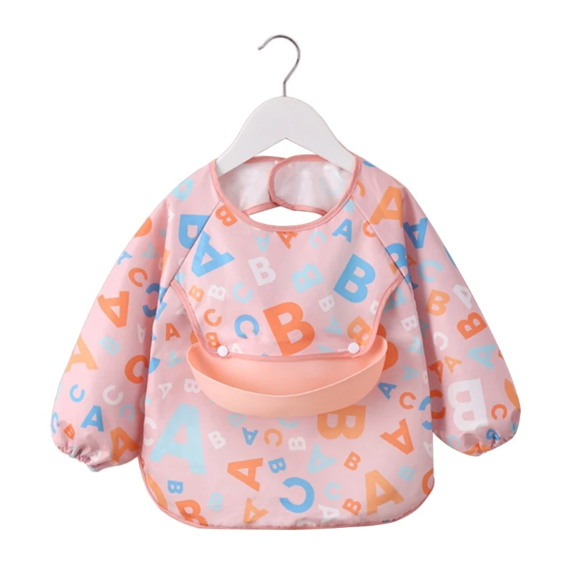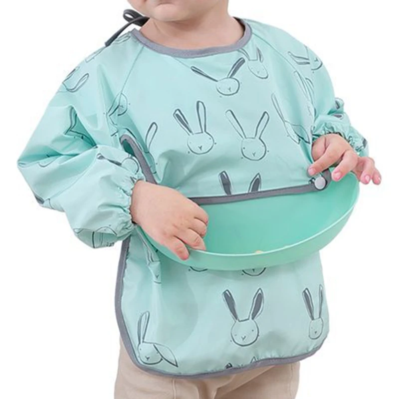 Водонепроницаемый детский мультяшный нагрудник, регулируемый нагрудник для кормления младенцев, нагрудник из ткани с длинным рукавом, фартук с рисунком