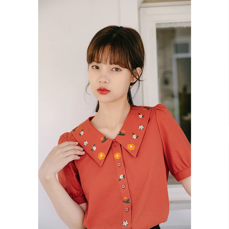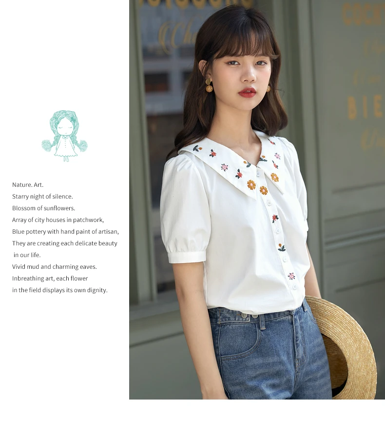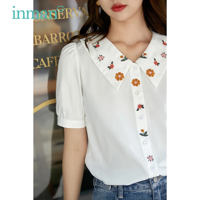 INMAN блузка женская с вышивкой, хлопковая блузка в ретро стиле, с пышными рукавами, с воротником с лацканами, с короткими рукавами, в Литературном стиле, цвет белый, красный, кардиган с пуговицами, на лето