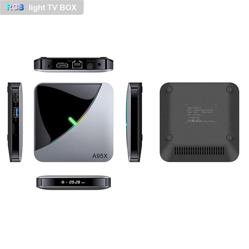Android 9,0 RGB светильник Smart TV Box Amlogic S905X3 USB3.0 1080P H.265 4K 60fps Wifi Google Player Youtube A95X F3 Air 8K TVBOX