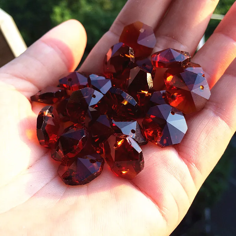 Красивый 14 мм темный фиолетовый кристалл стеклянная люстра Восьмиугольные бусины в два отверстия (свободные кольца) Рождественские украшения Diy Suncatcher